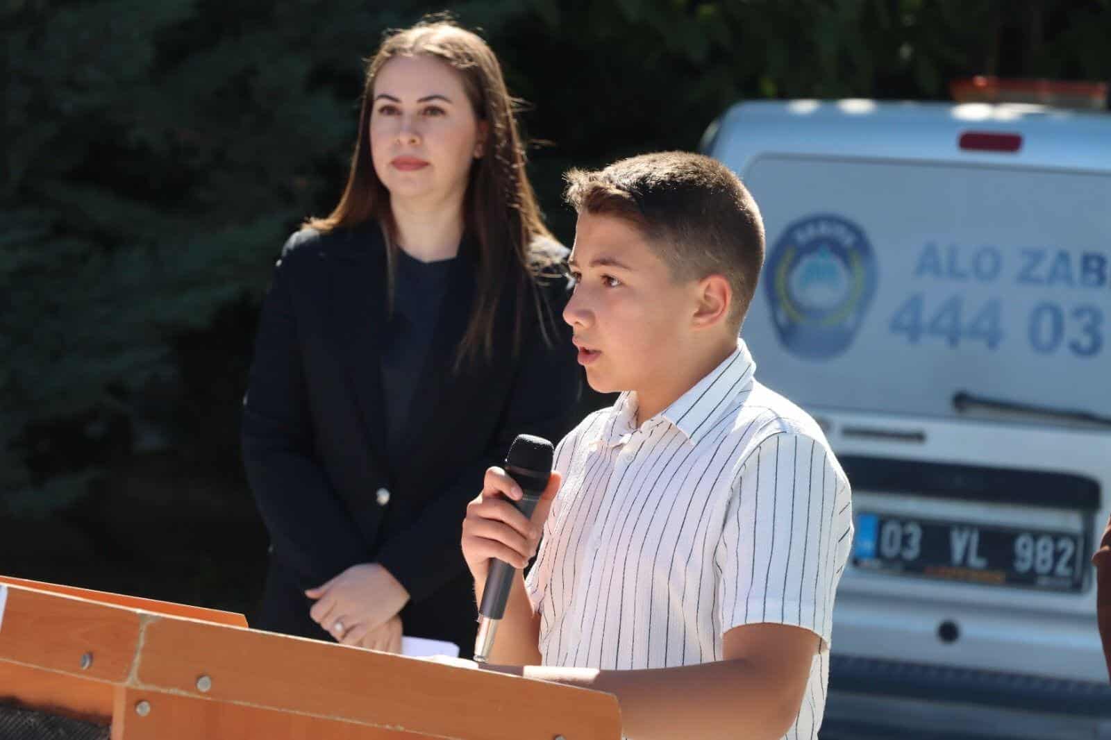 Atatürk Büstü'ne Kaymakamlık ve Belediye Başkanlığı çelenklerinin sunulmasıyla başlayan törende, Kıbrıs Gazimiz Osman ERKAN günün anlam ve önemini belirten konuşmasını yaptı. Ardından öğrencilerimiz tarafından şiirler okunarak duygu dolu anlar yaşandı.